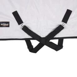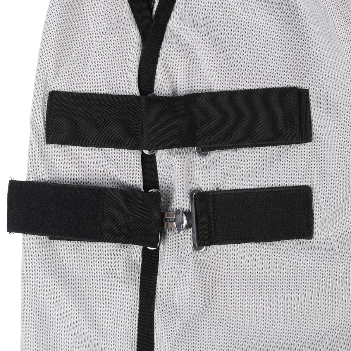 - vaste, hele hals met stevige klittenbandsluiting over de hele lengte van de hals en bevestigingslussen voor aan het halster, zodat het halsgedeelte niet naar achteren kan schuiven