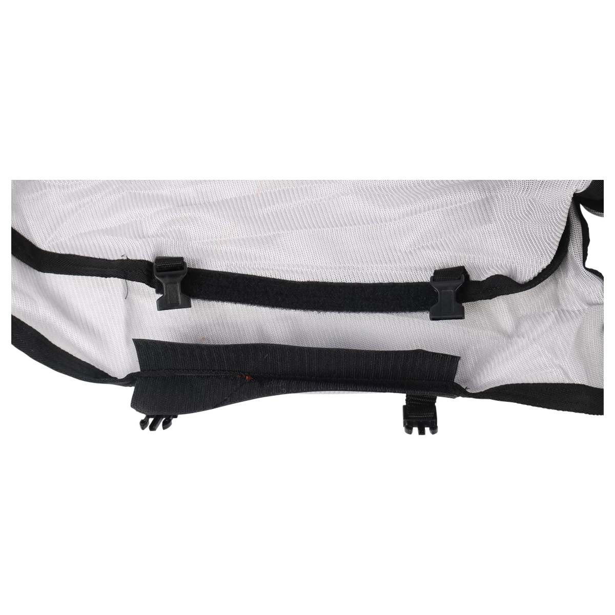 - dubbele koppelsluiting op de borst, afgedekt met klittenband
