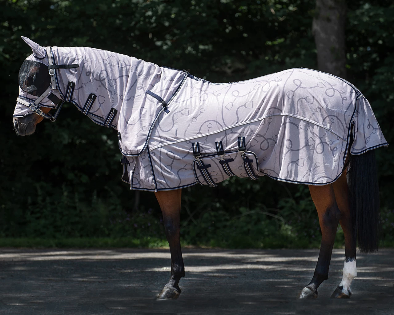 Vliegendeken QHP Collection Combo Met Hals En Masker Donkerblauw-beige